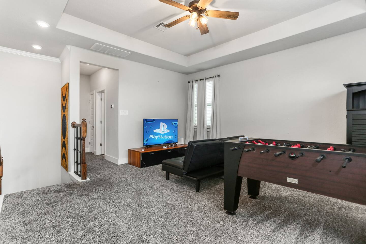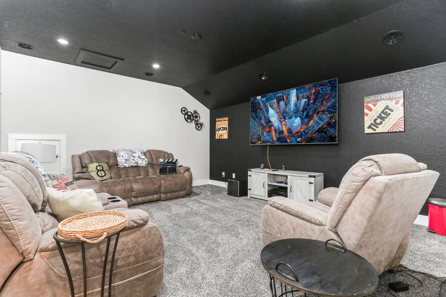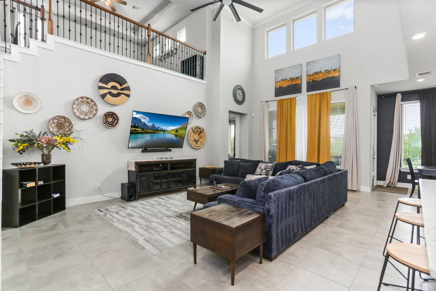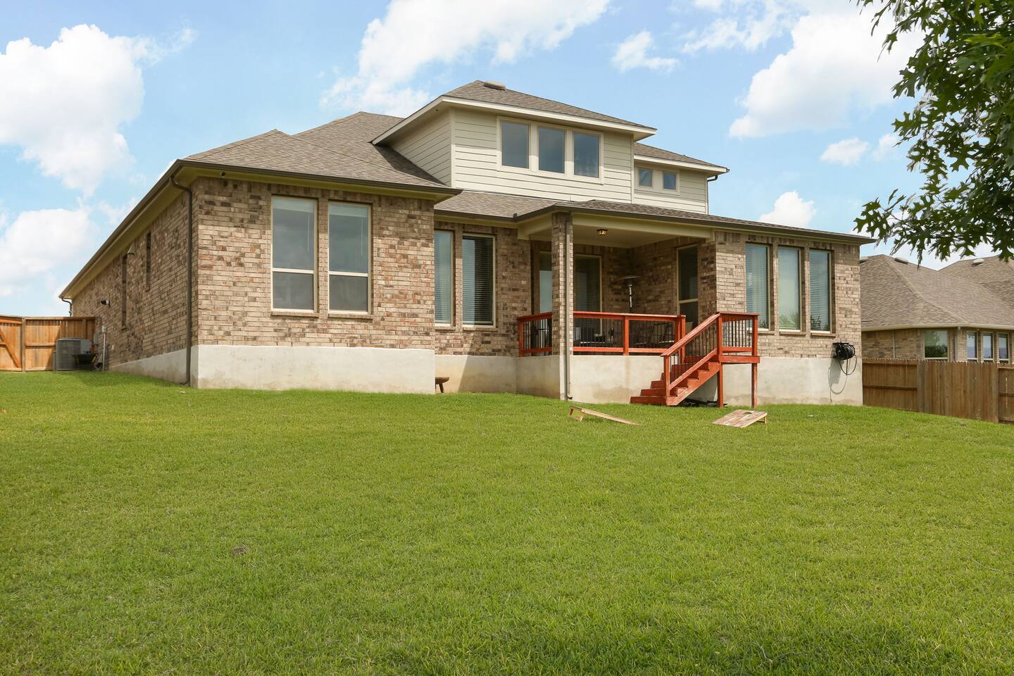 - Sleeps up to 15 guests comfortably - 2 KING beds + ample sleeping space for large groups - Movie room for cozy nights in - Game room with foosball & game console - Dedicated office space for remote work - Pack 'n Play + high chair for families with little ones - Fully equipped chef’s kitchen for home-cooked - meals - Professionally cleaned & sanitized - Self Check-In - Washer/dryer in-unit Plus, it's: - Just 4 miles from SeaWorld San Antonio and Aquatica San Antonio - A 25-minute car ride to downtown San Antonio - Get to Lackland Air Force Base in 20 minutes by car - THREE living spaces with cozy seating, plus a game room and movie room - More than 3,000 sq feet of thoughtfully designed space Plus, this home is: 4 miles (8 min) from SeaWorld San Antonio 13 miles (20 min) from San Antonio Aquarium 13 miles (20 min) from Lackland Air Force Base 13 miles (15 min) from the Shops at La Cantera 15 miles (18 min) from Six Flags Fiesta Texas 22 miles (25 min) from downtown San Antonio 22 miles (25 min) from the Alamo 22 miles (25 min) from the San Antonio River Walk 25 miles (30 min) from San Antonio Zoo 25 miles (30 min) from the Doseum 25 miles (30 min) from Witte Museum Close to restaurants and grocery stores -- BEDROOMS -- This more than 3,000 sq foot home has five spacious bedrooms. There are 4 bedrooms and two living areas located on the main level of the house. The master bedroom features a king-size bed, and a Smart TV to watch your favorite shows. It also includes an ensuite bathroom plus a large walk-in closet. The second bedroom is outfitted with a king-size bed, en suite bathroom and closet. The third bedroom features a twin over full bunk bed and the fourth bedroom includes a full over full bunk bed. The fifth bedroom is located on the second level and features a queen-size bed. The game room also has a futon that can be used as an additional sleep space. If you’re traveling with little ones feel free to use the pack n’ play and high chair! -- BATHROOMS -- -- BATHROOMS -- There are four FULL bathrooms. The first one is attached to the primary bedroom. The second bathroom is attached to the second bedroom. The third full bathroom is located in the hallway with the bunk rooms. The fourth full bathroom is located on the second level. There is also a half bathroom on the first level. All bathrooms include towels and essential toiletries (body wash, shampoo, conditioner). -- KITCHEN -- The heart of the home is this spacious, open-concept kitchen—perfect for gathering, cooking, and making memories. Featuring modern appliances, plenty of counter space, and a dedicated coffee bar, it’s fully stocked for all your cooking needs. The bar seating for 3 makes it easy to chat with the cook or enjoy a quick bite, while the dining table seats 6 comfortably for family meals or game nights. Additional seating in the adjacent living room keeps everyone connected, whether you're sipping coffee, sharing meals, or just relaxing together. -- LIVING ROOM -- There are four living spaces in the house. The main level living room is located next to the kitchen and is a great space for chatting while whipping up culinary delights. You will see the second living space as soon as you enter the home. The third and fourth living spaces are on the second level. One has been turned into a game room with a foosball table, game console and futon. The other is a movie room with comfy seating and a big screen TV. -- OUTDOOR AREA -- Take in the beautiful Texas sunrise or sunset on the back porch during your stay. There is outdoor seating so you can bring your favorite drink and just enjoy the peace and quiet. -- Book Today & Enjoy the Best of San Antonio! -- To abide by all legal requirements and property rules, you WILL be asked to provide a copy of your official government-issued photo ID, confirm your contact information, pass through our verification portal and, in some instances, complete a criminal background check. Failure to provide these documents will result in a cancellation and denied entry. IMPORTANT NOTE: The information is collected for verification only and is not stored or used for any other purposes.