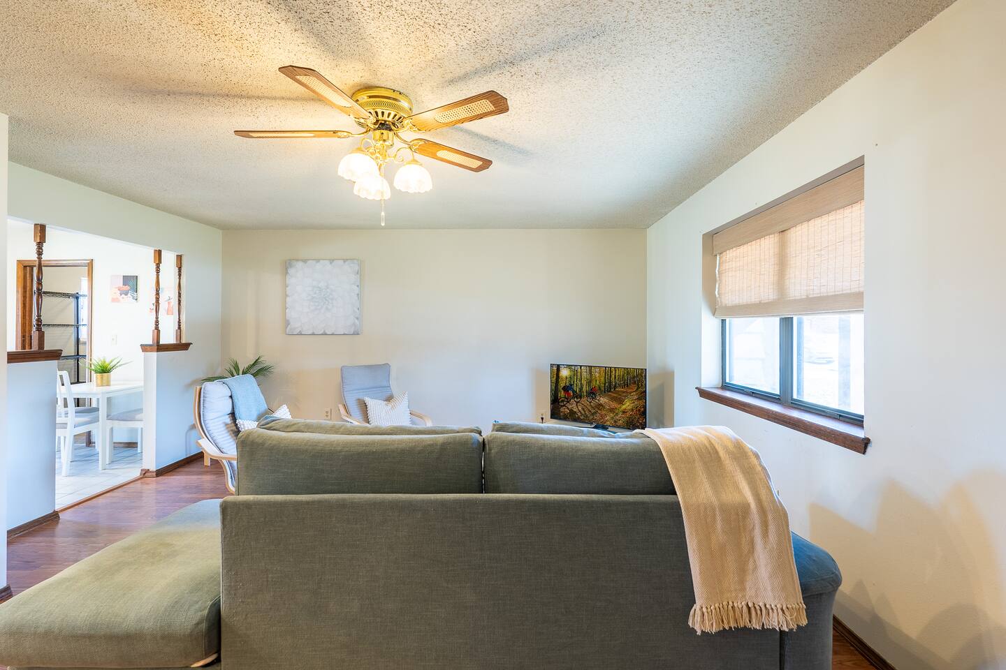 Welcome to your perfect home away from home! This stylish and newly furnished 2-bedroom, 1-bathroom home is designed with a modern minimalist aesthetic—clean lines, clutter-free spaces, and everything you need for a comfortable stay. - 2 Cozy Bedrooms: Two QUEEN beds with premium linens, and ample closet space - Bright & Airy Living Room: Relax on the modern sofa and stream your favorite shows on the Smart TV - Fully equipped kitchen and dining space - Washer/dryer in-unit