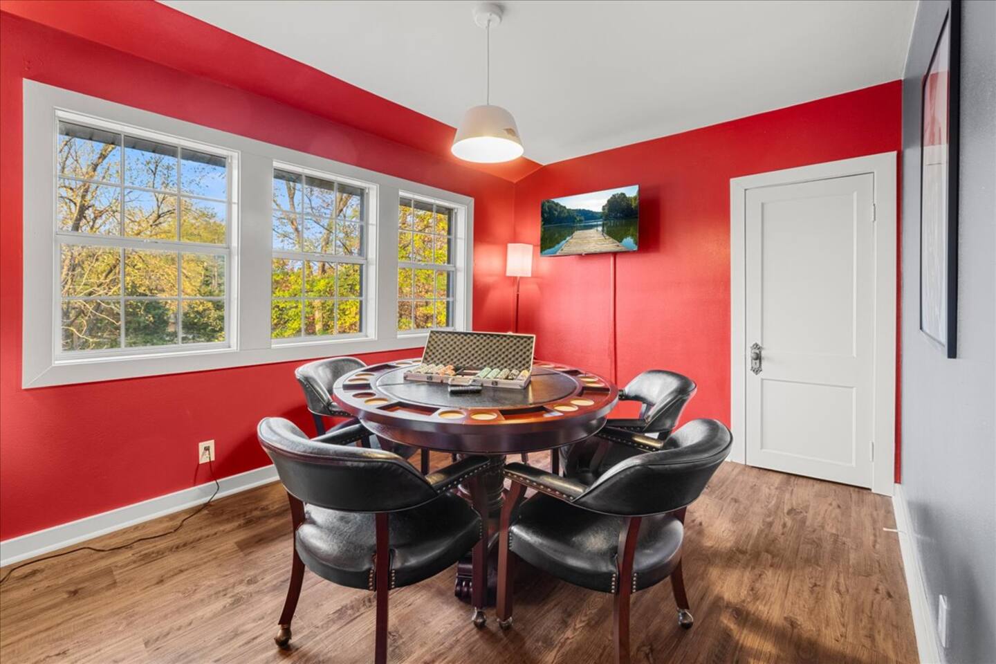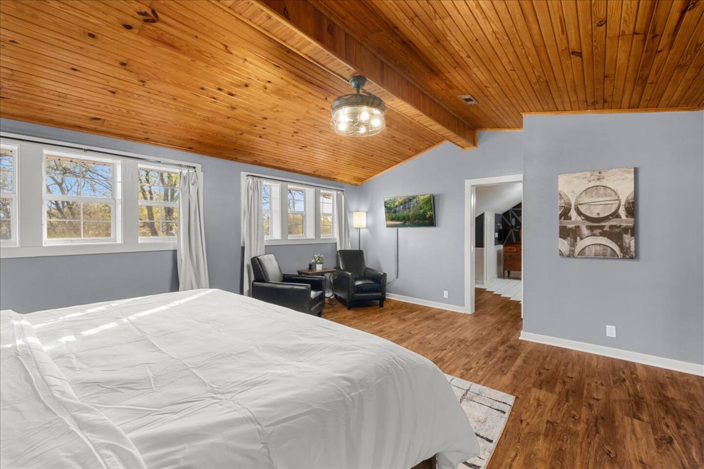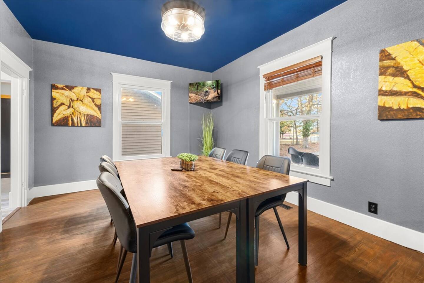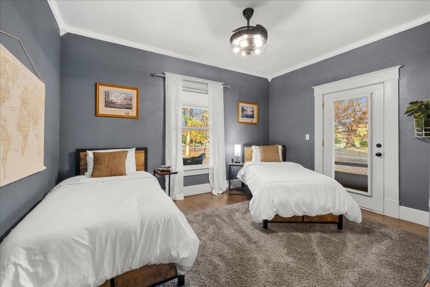 - 4 bedrooms with 2 KING beds, home sleeps 9 total - Outdoor covered pavilion with outdoor seating and grill - Wraparound porch that overlooks vintage barn and scenic 5 acres - Spacious living space + game room! - Perfect for families and groups traveling together For Mountain Bikers: - Secure bike storage in attached garage - 4.1 miles to Lake Atalanta - 6.4 miles to Slaughter Pen Trailhead - 8 miles to Park Springs Park For Families: - Large open area to run and play - Pack-n-play and high chair (inquire prior to stay) - Kids’ plates, bowls and cups - Child gate (inquire prior to stay) Plus, this home is: 2 miles (4 min) from Rogers Municipal Airport 3 miles (8 min) from Downtown Rogers 3 miles (8 min) from The Railyard Bike Park 4 miles (11 min) from Lake Atalanta Parks & Trails 6 mile (15 min) from Downtown Bentonville 6 miles (15 min) from Walmart Home Office 6 mile (15 min) from Scott Family Amazeum 6 mile (15 min) from Crystal Bridges Museum of American Art 6 mile (15 min) from The Momentary 17 miles (30 min) from Northwest Arkansas National Airport Minutes from grocery stores and various restaurants -- BEDROOMS -- This newly renovated home has four spacious bedrooms. There are two bedrooms located on the first floor. The first bedroom has a queen-size bed and the second bedroom has two twin-size beds. There are two bedrooms located on the second floor. The third bedroom has a king-size bed and the fourth bedroom has a king-sized bed and one twin-size beds. All four bedrooms have TVs and clothes storage. -- BATHROOMS -- There are two full bathrooms. The first one is located downstairs in between the two downstairs bedrooms. The second bathroom is located upstairs and is attached to the fourth bedroom. All bathrooms include towels and essential toiletries (body wash, shampoo, conditioner). -- KITCHEN -- After a day of exploring beautiful Northwest Arkansas, settle in for the night and prepare your favorite meal in the fully loaded kitchen with everything you’ll need for cooking and baking. Plus there’s plenty of seating in the dining room for the whole crew to gather around and dine. Sip on morning coffee or tea on the wraparound porch and soak up the serenity of living on 5 acres. Complimentary coffee and tea provided. When it comes time for enjoying your meals, you can head over to the beautiful wood dining table that seats eight. The open kitchen/dining area is perfect for morning chats, family meals and game night. -- LIVING ROOM -- There are two living spaces in the house. The main level living room is located next to the kitchen. The second living room is located in the finished out garage. -- OUTDOOR AREA -- Our home is set up to spend plenty of time outside in the fresh air! The backyard features a grill, covered pavilion, outdoor seating and fire pit. -- Book Today & Enjoy the Best of Bentonville & Rogers! -- To abide by all legal requirements and property rules, you WILL be asked to provide a copy of your official government-issued photo ID, confirm your contact information, pass through our verification portal and, in some instances, complete a criminal background check. Failure to provide these documents will result in a cancellation and denied entry. IMPORTANT NOTE: The information is collected for verification only and is not stored or used for any other purposes.