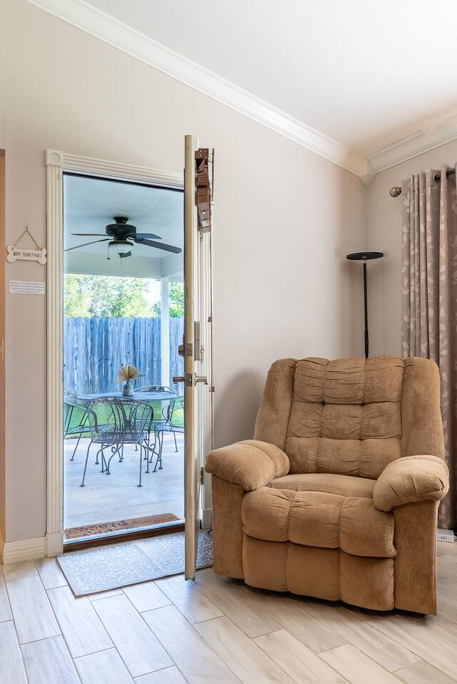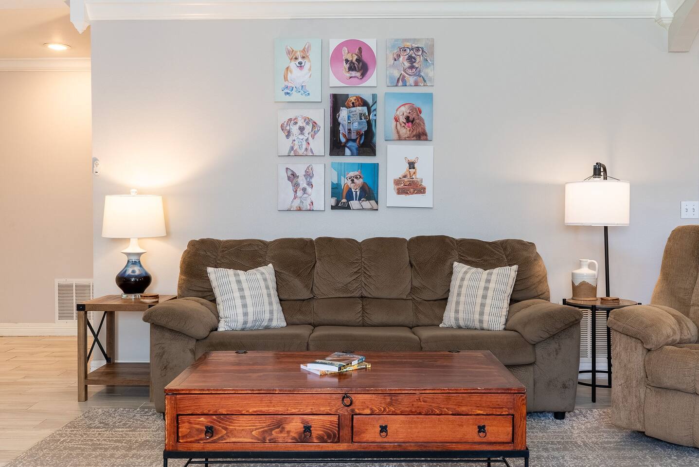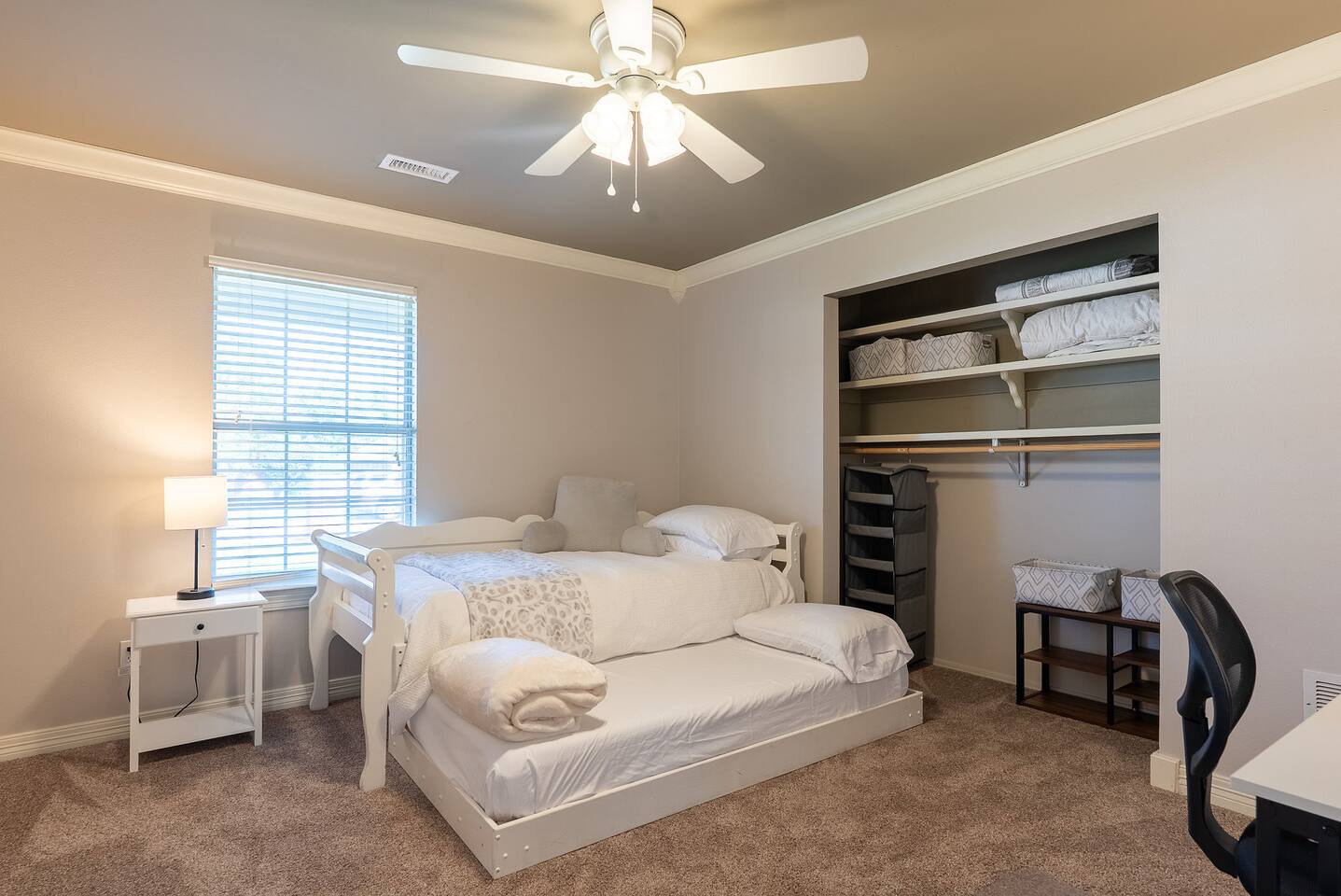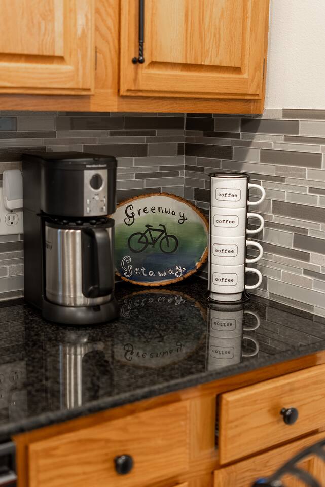 - A 1-minute bike ride or 5-minute walk from Turtle Creek Trail, which provides access to the Razorback Regional Greenway. - Dog friendly - large fenced-in yard and only a few minutes from a walking trail - Three cozy bedrooms with 1 king, 1 queen and 2 twin beds. Great for families. - Dedicated workspace that’s perfect remote work. - Private backyard for dining al fresco or sipping on your favorite drink. Plus, this home is: 3 miles (8 min) from Walmart Home Office Campus 3 miles (10 min) from Downtown Rogers 4 miles (12 min) from The Momentary 5 miles (13 min) from Downtown Bentonville 5 miles (13 min) from Scott Family Amazeum 5 miles (13 min) from Crystal Bridges Museum of American Art 14 miles (26 min) from Northwest Arkansas National Airport 1 mile from Walmart Supercenter Less than a mile from various restaurants -- BEDROOMS -- This home has three bedrooms. The primary bedroom features a king-size bed, an en-suite bathroom and closet. The second bedroom is outfitted with a queen-size bed and closet. The third bedroom features two twin-size beds (trundle) and closet. The third bedroom also includes a dedicated workspace with desk and chair. -- BATHROOMS -- There are two FULL bathrooms. The first one is attached to the primary bedroom. The second bathroom is conveniently located near the second and third bedrooms. All bathrooms include towels and essential toiletries (body wash, shampoo, conditioner). -- KITCHEN -- After hitting the trails or sightseeing, prepare your favorite meal in the fully loaded kitchen with everything you’ll need for cooking and baking. Aside from all the kitchen basics, you’ll also find a toaster, a blender, and a crockpot. Sip morning coffee on the private back porch and take in the beautiful Northwest Arkansas sunrise. Complimentary coffee provided When it comes time for enjoying your meals, you can head over to the beautiful wood dining table that seats six. -- LIVING ROOM -- The living room is the first room you will see when you enter the home. It is the perfect spot for lounging around with family and friends, or watching a movie on the Smart TV. -- OUTDOOR AREA -- The backyard is fully fenced-in and features a bike wash station and outdoor seating. -- Book Today & Enjoy the Best of Rogers! -- To abide by all legal requirements and property rules, you WILL be asked to provide a copy of your official government-issued photo ID, confirm your contact information, pass through our verification portal and, in some instances, complete a criminal background check. Failure to provide these documents will result in a cancellation and denied entry. IMPORTANT NOTE: The information is collected for verification only and is not stored or used for any other purposes.