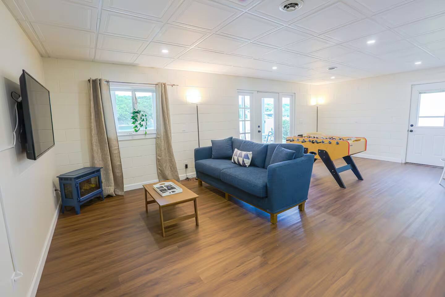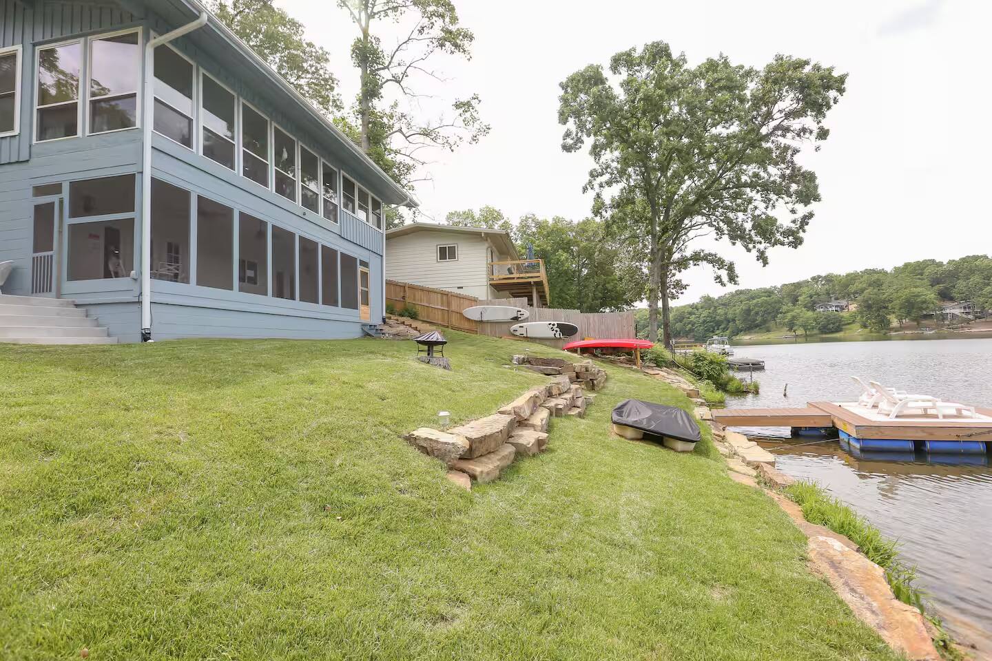 For Mountain Bikers: - 4 mins to Tanyard Creek Nature Trail - 9 mins to Lake Bella Vista Trailhead - 11 mins to Little Sugar Trailhead - 11 mins to Blowing Springs Trailhead - 12 mins to Back 40 Lake Ann Trailhead - 20 mins to Slaughter Pen Trailhead For Families: - Two living rooms, board games galore, ping pong table & game console! - 9 mins to Kingsdale Park Playground (free putt-putt golf course, just bring your own golf clubs and balls!) - 9 mins to Kingswood Golf Course - 11 mins to Blowing Springs Park - 20 mins to downtown Bentonville Plus, this home is: 8.3 miles (15 min) from Coler Creek Mountain Bike Preserve 11 miles (20 min) from Downtown Bentonville 11 miles (20 min) from Scott Family Amazeum 11 miles (20 min) from Crystal Bridges Museum of American Art 19 miles (30 min) from Northwest Arkansas National Airport -- BEDROOMS -- This beautiful lakehouse has three spacious bedrooms. There are two bedrooms and one living area located on the main level of the house. The primary bedroom features a king-size bed. It also includes an ensuite bathroom. The second bedroom is features a queen-size bed and one set of bunk beds. The third bedroom is located on the lower level, it has a king-size bed. -- BATHROOMS -- There are three full bathrooms. The first bathroom is located on the first level. The second bathroom is attached to the primary bedroom. The third bathroom is located on the lower level. All bathrooms include towels and essential toiletries (body wash, shampoo, conditioner). -- KITCHEN -- After hitting the trails or sightseeing, prepare your favorite meal in the fully loaded kitchen with everything you’ll need for cooking and baking. This kitchen is a chef’s dream and fully equipped, so you can whip anything your heart desires. Sip on morning coffee or tea on the back deck and take in the breathtaking views of Lake Avalon. Complimentary coffee provided. When it comes time for enjoying your meals, you can head over to the wooden dining table that can seat up to 8. The open kitchen/dining area is perfect for morning chats, family meals and game night. -- LIVING ROOM -- There are two living spaces in the house. The main level living room is the first room you see when you enter the home. The second living room is located on the lower level. It is the perfect spot for lounging around with family and friends, or watching a movie on the Smart TV. -- OUTDOOR AREA -- Our home is set up to spend plenty of time outside in the fresh air! The backyard features a propane grill, outdoor furniture, fire pit, and private dock! -- Book Today & Enjoy the Best of Bella Vista! -- To abide by all legal requirements and property rules, you WILL be asked to provide a copy of your official government-issued photo ID, confirm your contact information, pass through our verification portal and, in some instances, complete a criminal background check. Failure to provide these documents will result in a cancellation and denied entry. IMPORTANT NOTE: The information is collected for verification only and is not stored or used for any other purposes.