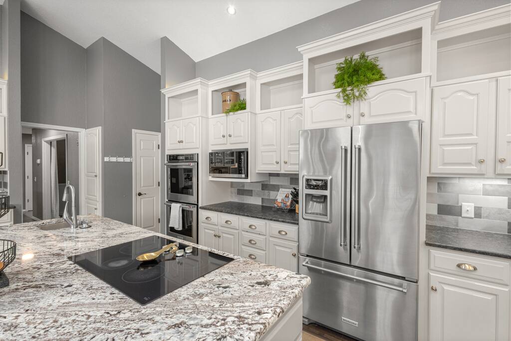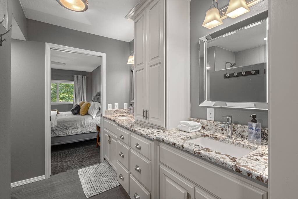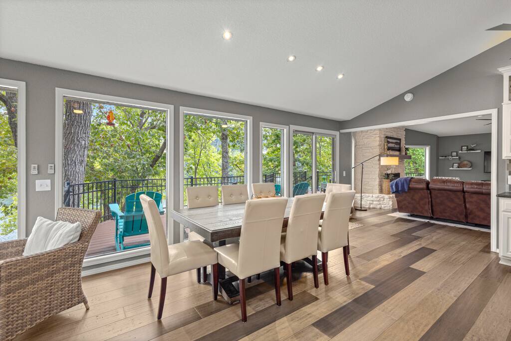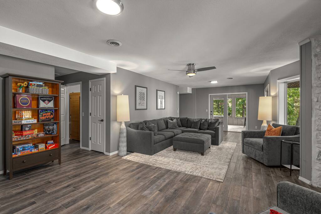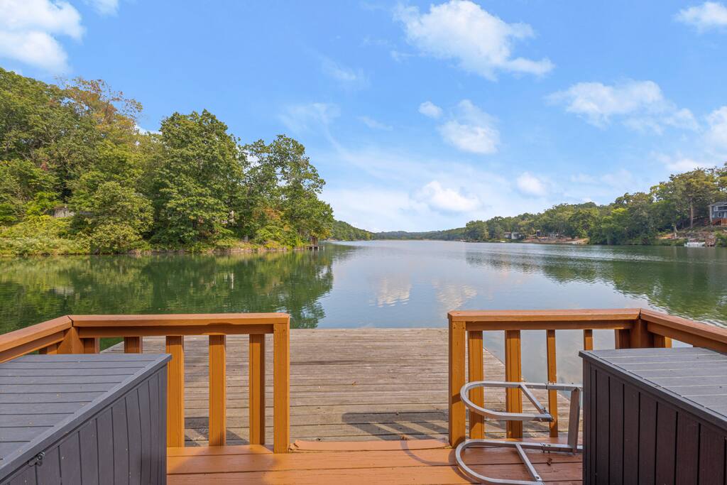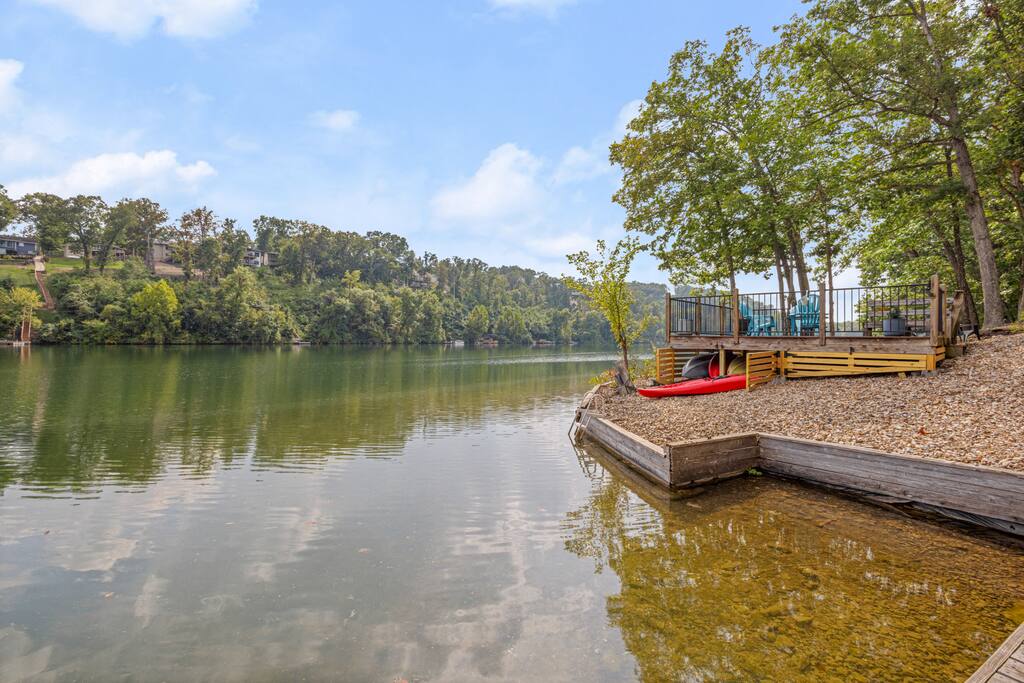 Two-story lakehouse with private dock, infrared sauna and game room! This 3 bedroom, 3 bathroom on Lake Avalon, is the perfect place to explore the beauty and wonder of Northwest Arkansas. Tucked in the hills of Bella Vista, enjoy the quiet of nature and the convenience of the city. - Private dock, infrared sauna & game room! - Large deck with grill that overlooks Lake Avalon - Professionally cleaned & sanitized - Self Check-In - Fully equipped kitchen + dining space - Washer/dryer in-unit