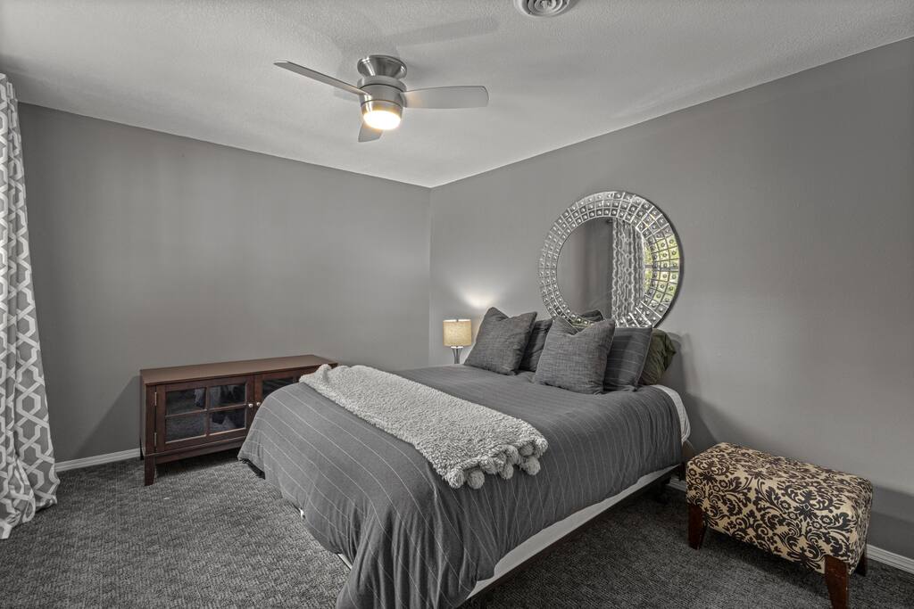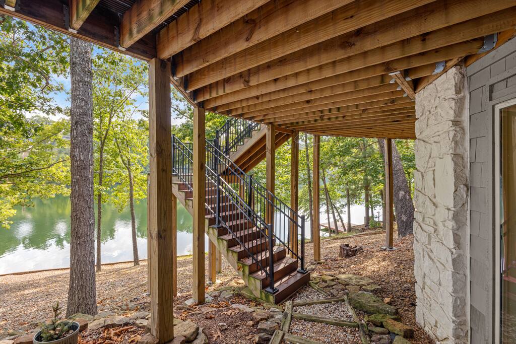 For Mountain Bikers: - Secure bike storage available - 5 mins to Tanyard Creek Nature Trail - 8 mins to Little Sugar Trailhead - 9 mins to Lake Bella Vista Trailhead - 9 mins to Blowing Springs Trailhead - 12 mins to Back 40 Lake Ann Trailhead - 18 mins to Slaughter Pen Trailhead For Families: - Two living rooms, board games galore, ping pong table & game console! - 8 mins to Kingsdale Park Playground (free putt-putt golf course, just bring your own golf clubs and balls!) - 8 mins to Kingswood Golf Course - 10 mins to Blowing Springs Park - 18 mins to downtown Bentonville Plus, this home is: 8.4 miles (15 min) from Coler Creek Mountain Bike Preserve 10 mile (18 min) from Downtown Bentonville 10 mile (18 min) from Scott Family Amazeum 10 mile (18 min) from Crystal Bridges Museum of American Art 20 miles (30 min) from Northwest Arkansas National Airport -- BEDROOMS -- This beautiful lakehouse has three spacious bedrooms. There is one bedroom and one living area located on the main level of the house. The primary bedroom features a king-size bed. It also includes a massive walk-in closet. The second and third bedrooms are on the lower level. Both bedrooms have a queen-size bed and closet. -- BATHROOMS -- There are three full bathrooms. The first bathroom is located on the first level. The second bathroom is attached to the primary bedroom. The third bathroom is located on the lower level. All bathrooms include towels and essential toiletries (body wash, shampoo, conditioner). -- KITCHEN -- After hitting the trails or sightseeing, prepare your favorite meal in the fully loaded kitchen with everything you’ll need for cooking and baking. This kitchen is a chef’s dream and fully equipped, so you can whip anything your heart desires. Sip on morning coffee or tea on the back deck and take in the breathtaking views of Lake Avalon. Complimentary coffee provided. When it comes time for enjoying your meals, you can head over to the wooden dining table that can seat up to 8. The open kitchen/dining area is perfect for morning chats, family meals and game night. -- LIVING ROOM -- There are two living spaces in the house. The main level living room is the first room you see when you enter the home. The second living room is located on the lower level. It is the perfect spot for lounging around with family and friends, or watching a movie on the Smart TV. -- OUTDOOR AREA -- Our home is set up to spend plenty of time outside in the fresh air! The backyard features a propane grill, outdoor furniture, fire pit, and private dock! -- Book Today & Enjoy the Best of Bella Vista! -- To abide by all legal requirements and property rules, you WILL be asked to provide a copy of your official government-issued photo ID, confirm your contact information, pass through our verification portal and, in some instances, complete a criminal background check. Failure to provide these documents will result in a cancellation and denied entry. IMPORTANT NOTE: The information is collected for verification only and is not stored or used for any other purposes.