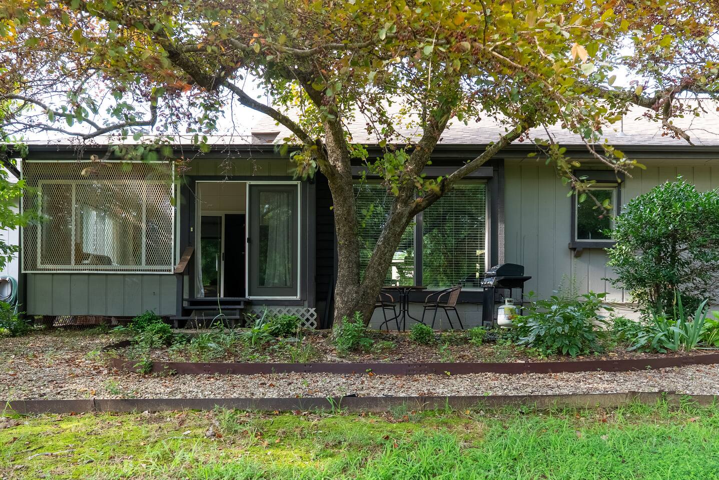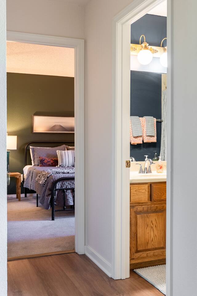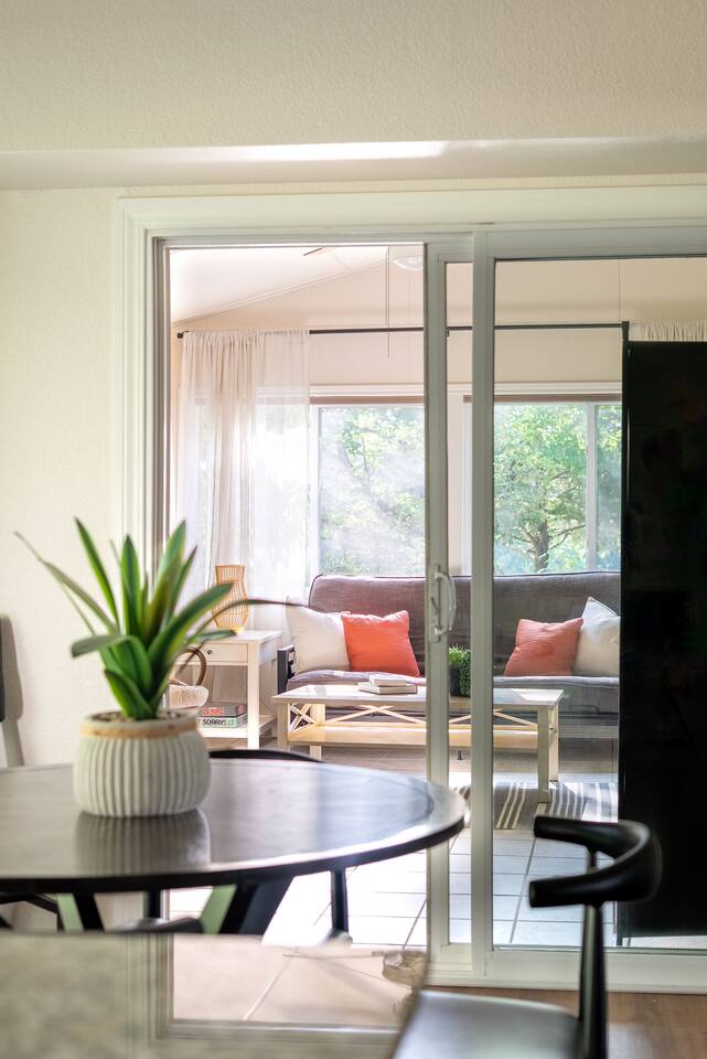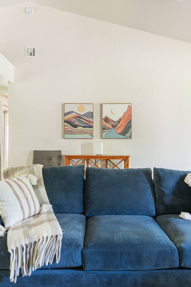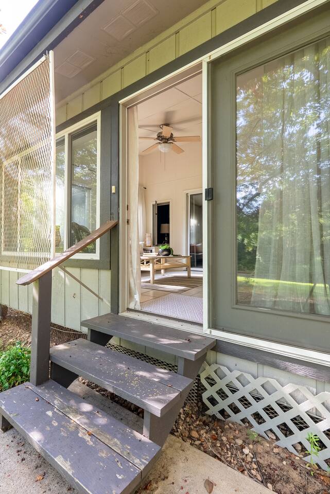 -- BEDROOMS -- This quaint townhome has two bedrooms. The primary bedroom features a king-size bed, and a Smart TV to watch your favorite shows. It also includes an ensuite bathroom and closet. The second bedroom is outfitted with a queen-size bed, a dedicated workspace and closet. -- BATHROOMS -- There are two FULL bathrooms. The first one is attached to the primary bedroom. The second bathroom is located next to the second bedroom. All bathrooms include towels and essential toiletries (body wash, shampoo, conditioner). -- KITCHEN -- After hitting the trails or sightseeing, prepare your favorite meal in the fully loaded kitchen with everything you’ll need for cooking and baking. Aside from all the kitchen basics, you’ll also find a toaster, a blender, and an air fryer. Sip on morning coffee on the back patio and take in the views of the beautiful Brittany Golf Course. Complimentary coffee provided. When it comes time for enjoying your meals, you can head over to the cozy circular dining table that seats 4, extra chairs available to seat 6. The open kitchen/dining area is perfect for morning chats, family meals and game night. -- LIVING ROOM -- The airy and bright living room features a fireplace, comfy sofa and 65” Smart TV. It is the perfect spot for lounging around with family and friends, or watching a movie. There is a second living space in the sunroom for late night chats and board game fun. It also includes a futon that can sleep two. -- OUTDOOR AREA -- The back patio features outdoor seating and a propane grill. Plus, this townhome is: 3.5 miles (10 mi) from Bella Vista Lake Trail 4 miles (9 min) from Blowing Springs Park 5 miles (12 min) from Little Sugar Trail Head 5 miles (11 min) from Tanyard Creek Nature Trail 6 miles (13 min) from Lake Avalon 8 miles (17 min) from Scott Family Amazeum 8 mile (17 min) from Crystal Bridges Museum of American Art 8 miles (17 min) from Downtown Bentonville 10 miles (20 min) from Walmart Home Office 20 miles (35 min) from Northwest Arkansas National Airport -- Book Today & Enjoy the Best of Bella Vista! -- To abide by all legal requirements and property rules, you WILL be asked to provide a copy of your official government-issued photo ID, confirm your contact information, pass through our verification portal and, in some instances, complete a criminal background check. Failure to provide these documents will result in a cancellation and denied entry. IMPORTANT NOTE: The information is collected for verification only and is not stored or used for any other purposes.