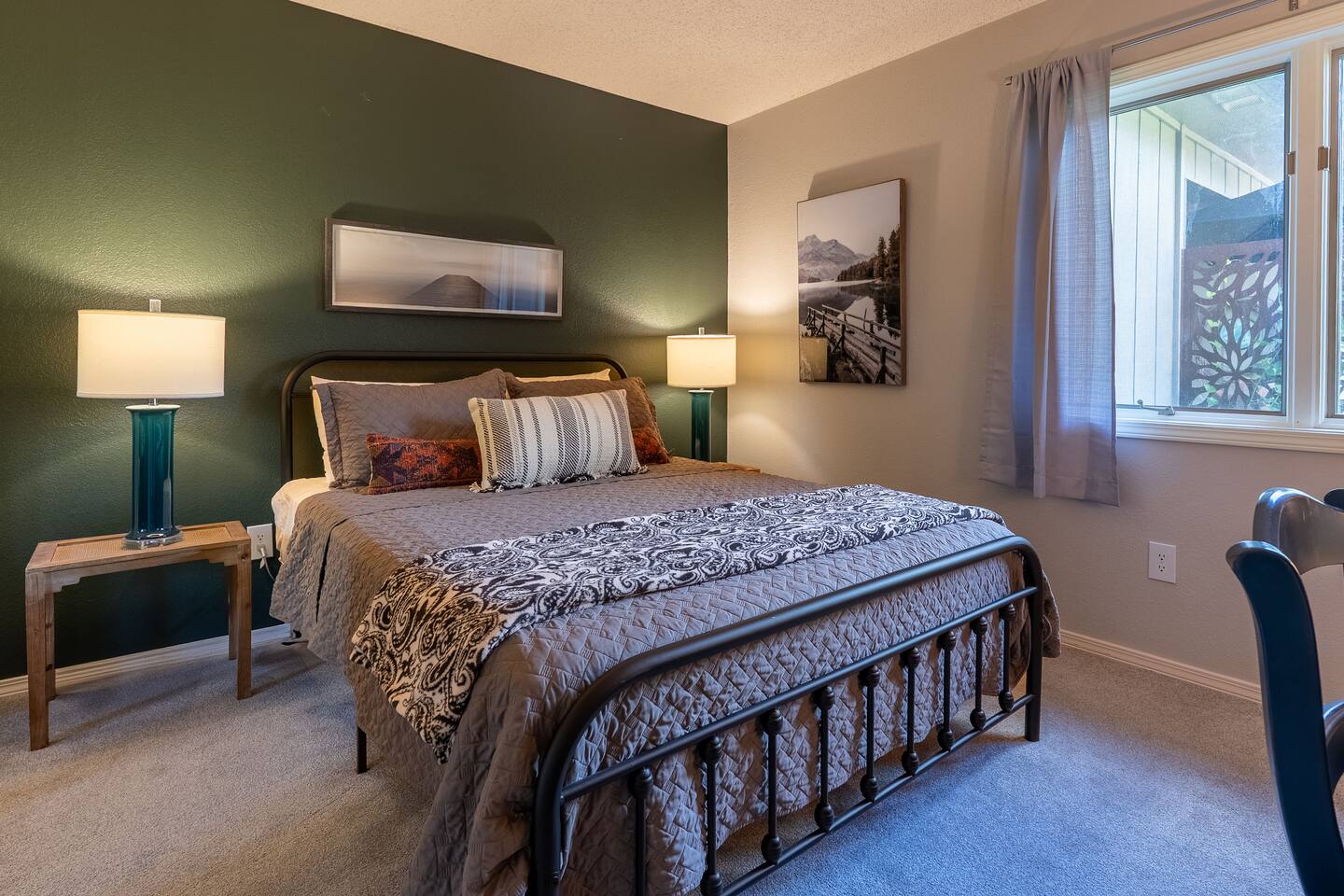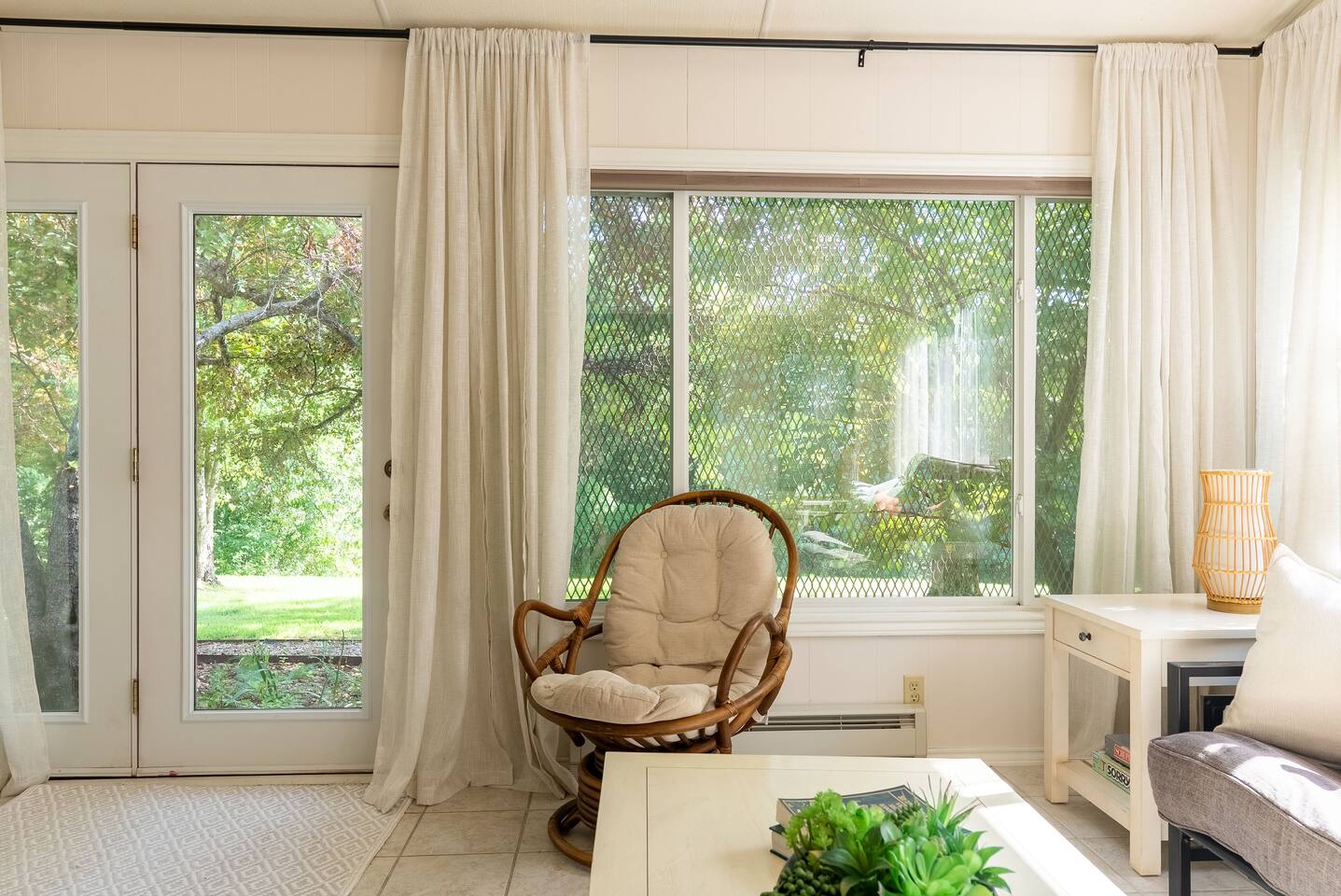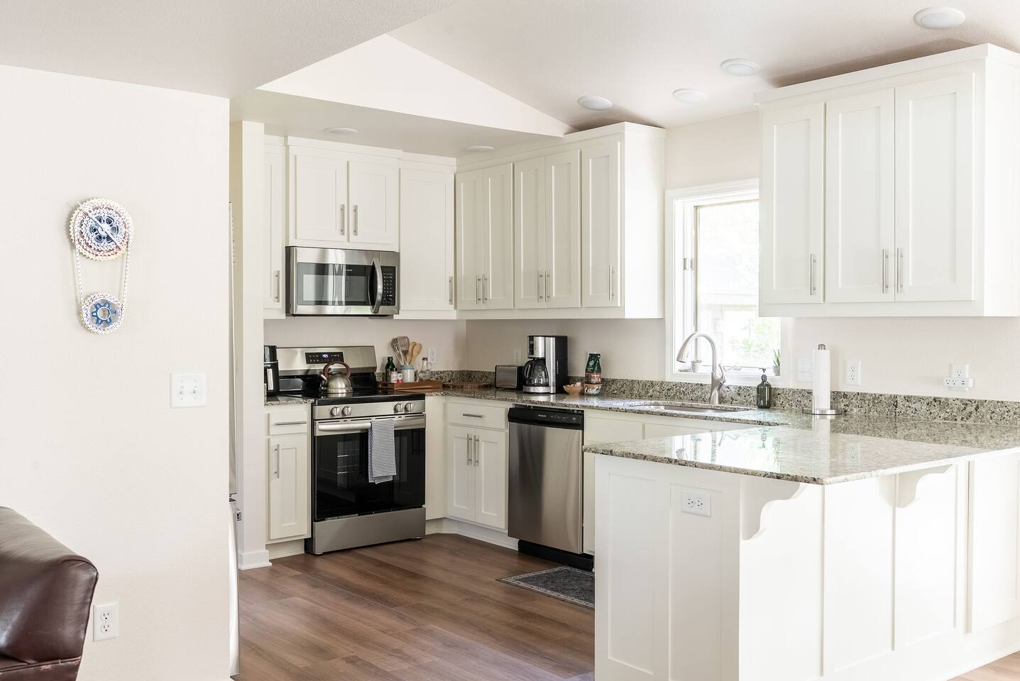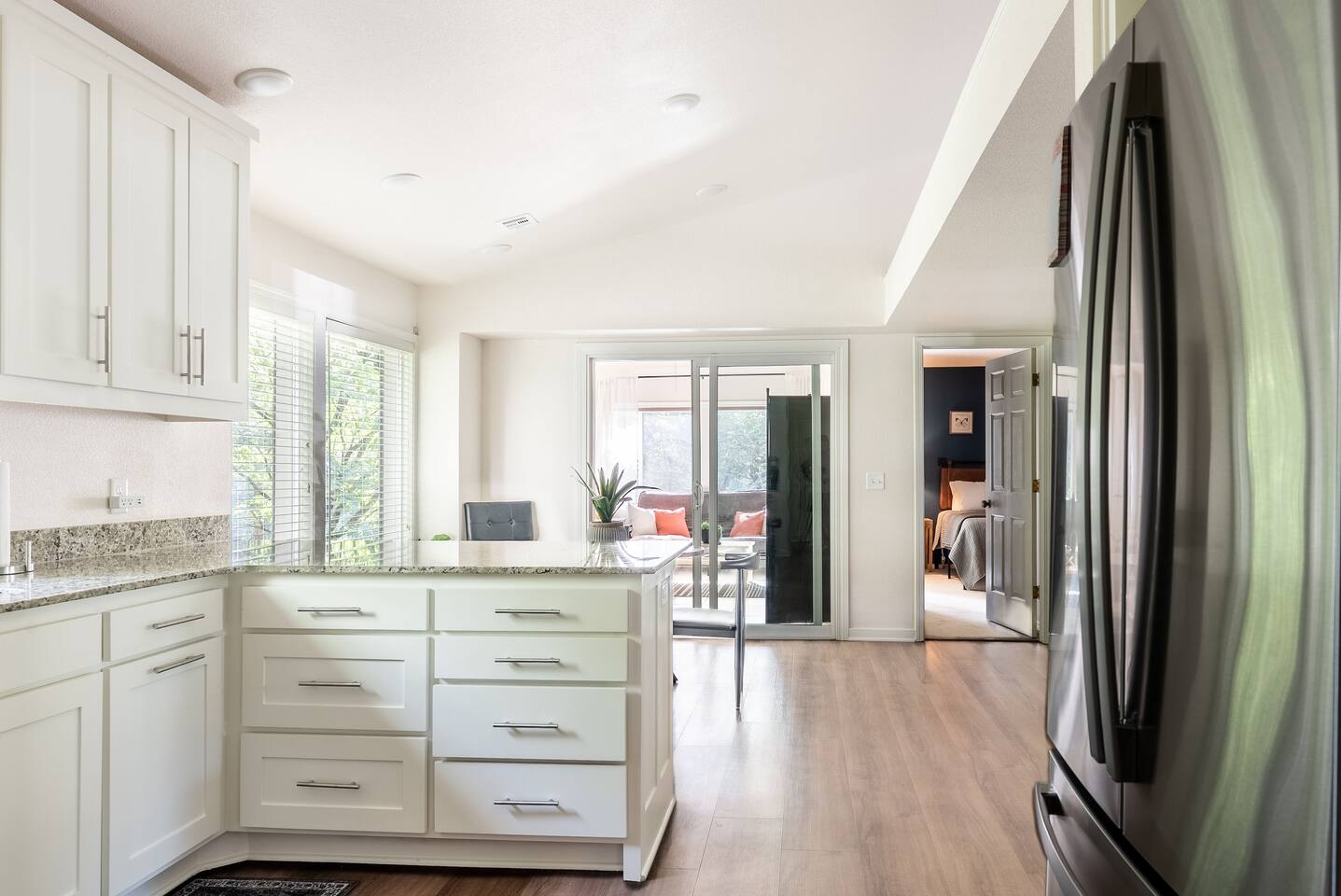 -- BEDROOMS -- This quaint townhome has two bedrooms. The primary bedroom features a king-size bed, and a Smart TV to watch your favorite shows. It also includes an ensuite bathroom and closet. The second bedroom is outfitted with a queen-size bed, a dedicated workspace and closet. -- BATHROOMS -- There are two FULL bathrooms. The first one is attached to the primary bedroom. The second bathroom is located next to the second bedroom. All bathrooms include towels and essential toiletries (body wash, shampoo, conditioner). -- KITCHEN -- After hitting the trails or sightseeing, prepare your favorite meal in the fully loaded kitchen with everything you’ll need for cooking and baking. Aside from all the kitchen basics, you’ll also find a toaster, a blender, and an air fryer. Sip on morning coffee on the back patio and take in the views of the beautiful Brittany Golf Course. Complimentary coffee provided. When it comes time for enjoying your meals, you can head over to the cozy circular dining table that seats 4, extra chairs available to seat 6. The open kitchen/dining area is perfect for morning chats, family meals and game night. -- LIVING ROOM -- The airy and bright living room features a fireplace, comfy sofa and 65” Smart TV. It is the perfect spot for lounging around with family and friends, or watching a movie. There is a second living space in the sunroom for late night chats and board game fun. It also includes a futon that can sleep two. -- OUTDOOR AREA -- The back patio features outdoor seating and a propane grill. Plus, this townhome is: 3.5 miles (10 mi) from Bella Vista Lake Trail 4 miles (9 min) from Blowing Springs Park 5 miles (12 min) from Little Sugar Trail Head 5 miles (11 min) from Tanyard Creek Nature Trail 6 miles (13 min) from Lake Avalon 8 miles (17 min) from Scott Family Amazeum 8 mile (17 min) from Crystal Bridges Museum of American Art 8 miles (17 min) from Downtown Bentonville 10 miles (20 min) from Walmart Home Office 20 miles (35 min) from Northwest Arkansas National Airport -- Book Today & Enjoy the Best of Bella Vista! -- To abide by all legal requirements and property rules, you WILL be asked to provide a copy of your official government-issued photo ID, confirm your contact information, pass through our verification portal and, in some instances, complete a criminal background check. Failure to provide these documents will result in a cancellation and denied entry. IMPORTANT NOTE: The information is collected for verification only and is not stored or used for any other purposes.