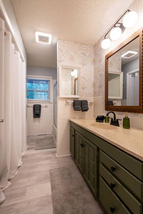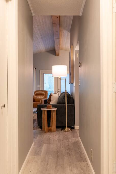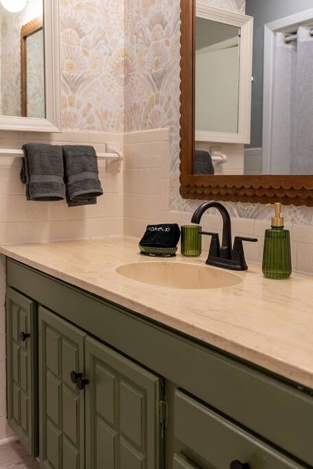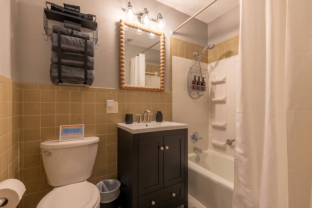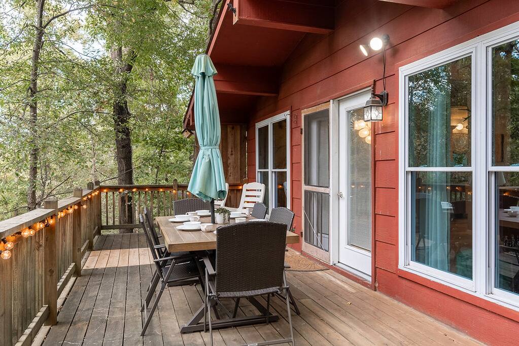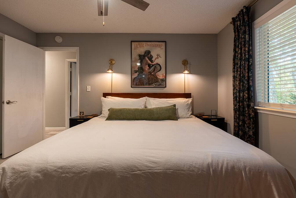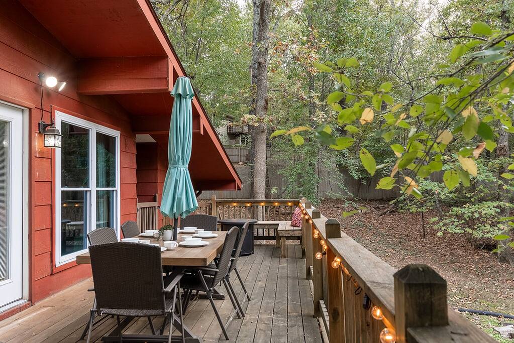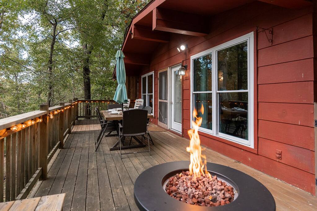 - 5-minute bike ride to Tunnel Vision and Sugar Bridge Multi Trail - Just a 3-minute drive to Lake Windsor - Dreamy outdoor deck with fire pit - Swanky hidden bar nook - Professionally cleaned & sanitized - Self Check-In - Fully equipped kitchen + dining space - Washer/dryer in-unit Easy car ride to: • Coler Creek Mountain Biking Preserve (10 min) • Downtown Bentonville (15 min) • Amazeum & Crystal Bridges Museum (15 min) -- BEDROOMS -- This cozy Bella Vista home has two bedrooms. The primary bedroom features a king-size bed, and a Smart TV to watch your favorite shows. It also includes an ensuite bathroom and closet. The second bedroom is outfitted with two twin-size beds, a Smart TV and closet. -- BATHROOMS -- There are two FULL bathrooms. The first one is attached to the primary bedroom. The second bathroom is located next to the second bedroom. All bathrooms include towels and essential toiletries (body wash, shampoo, conditioner). -- KITCHEN -- After hitting the trails or sightseeing, prepare your favorite meal in the fully loaded kitchen with everything you’ll need for cooking and baking. Aside from all the kitchen basics, you’ll also find a toaster, blender and crockpot. Sip on morning coffee on the back deck and take in the views of the beautiful Ozark views. Complimentary coffee provided. When it comes time for enjoying your meals, you can head over to the wooden dining table that seats 6. The open kitchen/dining area is perfect for morning chats, family meals and game night. -- LIVING ROOM -- The swanky, modern living room features a comfy sofa, swivel chairs and Smart TV. It is the perfect spot for lounging around with family and friends, or watching a movie. Plus, the sofa pulls out into a queen-sized bed. Additionally, there is a fun game nook in the living room to play checkers, chess and cards. See if you can find the hidden bar area where you can sip and chat about the day’s events. -- OUTDOOR AREA -- The back deck features outdoor seating and a propane fire pit. Plus, this home is: 0.5 miles (2 min) from Tunnel Vision 0.5 miles (2 min) from Sugar Bridge Multi Trail 0.9 miles (4 min) from Kingswood Golf Course 2.5 miles (5 min) from Tanyard Creek Nature Trail 2.6 miles (7 min) from Blowing Springs Park 2.6 miles (7 min) from Little Sugar Trail Head 3.5 miles (7 min) from Lake Avalon 8 miles (17 min) from Scott Family Amazeum 8 mile (17 min) from Crystal Bridges Museum of American Art 8 miles (17 min) from Downtown Bentonville 10 miles (20 min) from Walmart Home Office 20 miles (35 min) from Northwest Arkansas National Airport -- Book Today & Enjoy the Best of Bella Vista! -- To abide by all legal requirements and property rules, you WILL be asked to provide a copy of your official government-issued photo ID, confirm your contact information, pass through our verification portal and, in some instances, complete a criminal background check. Failure to provide these documents will result in a cancellation and denied entry. IMPORTANT NOTE: The information is collected for verification only and is not stored or used for any other purposes.