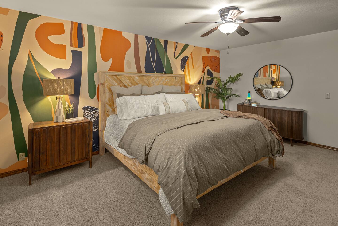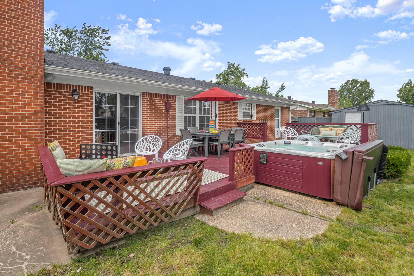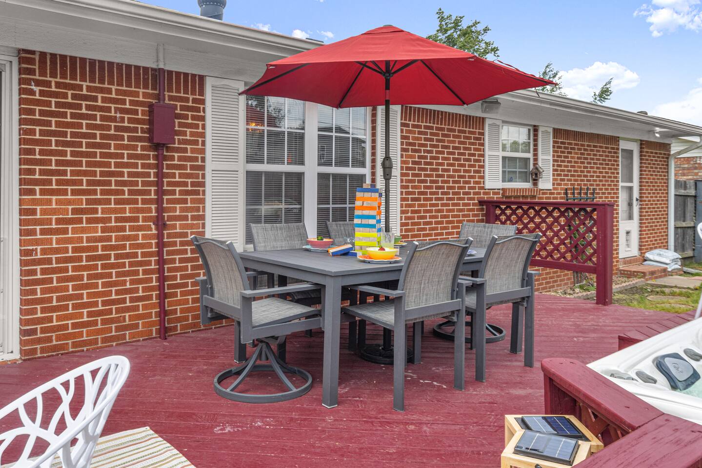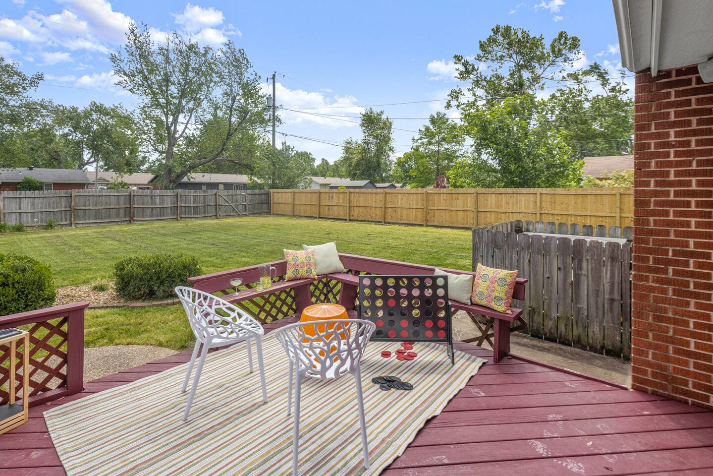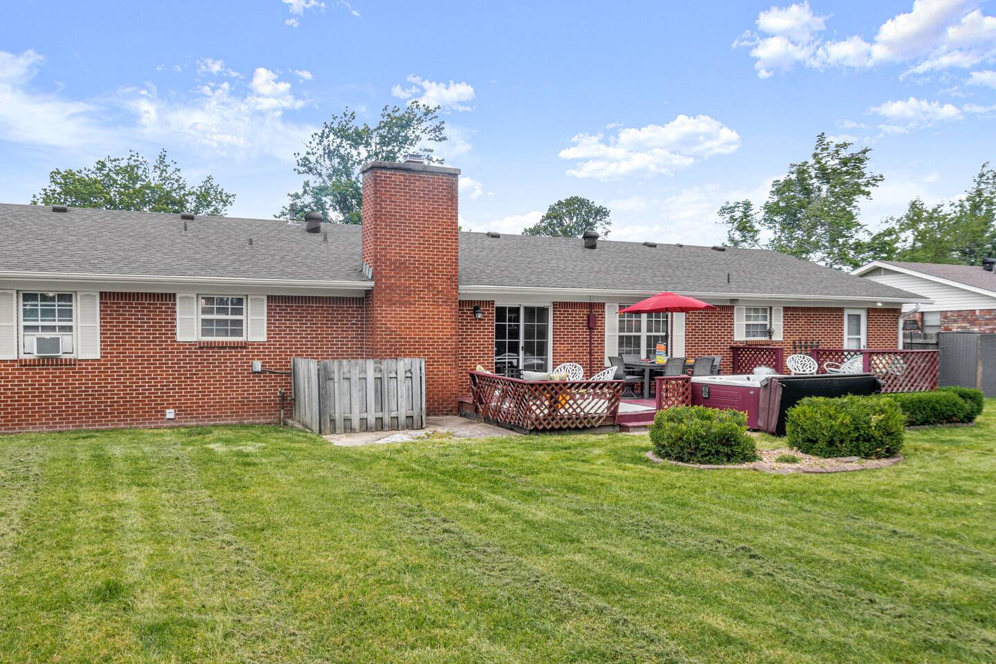 This home is a great option for teams visiting the area for work, families, and anyone who wants to have a totally funky time in Northwest Arkansas. Plus, this home is: 1.1 miles (4 min) from Walmart Home Office Campus 2.5 mile (8 min) from Downtown Bentonville 2.5 mile (7 min) from Scott Family Amazeum 2.5 mile (7 min) from Crystal Bridges Museum of American Art 1.8 mile (6 min) from The Momentary 14 miles (27 min) from Northwest Arkansas National Airport Less than a mile from various restaurants -- BEDROOMS -- This professionally designed home has four spacious bedrooms. The primary bedroom features a king-size bed, and an ensuite bathroom. The second bedroom is outfitted with a king-size bed and closet. The third bedroom has a queen-size bed, and the fourth bedroom has two twin-size beds. -- BATHROOMS -- There are two bathrooms. The first one is attached to the primary bedroom. The second bathroom is located in the hallway between the third and fourth bedrooms. All bathrooms include towels and essential toiletries (body wash, shampoo, conditioner). -- KITCHEN -- After exploring all that Northwest Arkansas has to offer, prepare your favorite meal in the fully loaded kitchen with everything you’ll need for cooking and baking. Aside from all the kitchen basics, you’ll also find a toaster, a blender, and an air fryer. Sip on morning coffee or tea on the back deck and take in the beautiful Northwest Arkansas sunrise. Complimentary coffee, k-cups and tea provided. When it comes time for enjoying your meals, you can head over to the beautiful wood dining table that seats six, plus bar seating. The open kitchen/dining area is perfect for morning chats, family meals and game night. -- LIVING ROOM -- The living room is located next to the kitchen and dining area, and is a totally groovy place for lounging around with family and friends, or watching a movie on the Smart TV. --OFFICE AREA-- In the are for work? We have you covered with your very own office, which includes two workspaces, a white board, and plenty of space to work on groovy ideas with your team. -- OUTDOOR AREA -- Our home is set up to spend plenty of time outside in the fresh air! The backyard features a hot tub, outdoor games and plenty of outdoor seating. -- Book Today & Enjoy the Best of Bentonville! -- To abide by all legal requirements and property rules, you WILL be asked to provide a copy of your official government-issued photo ID, confirm your contact information, pass through our verification portal and, in some instances, complete a criminal background check. Failure to provide these documents will result in a cancellation and denied entry. IMPORTANT NOTE: The information is collected for verification only and is not stored or used for any other purposes.