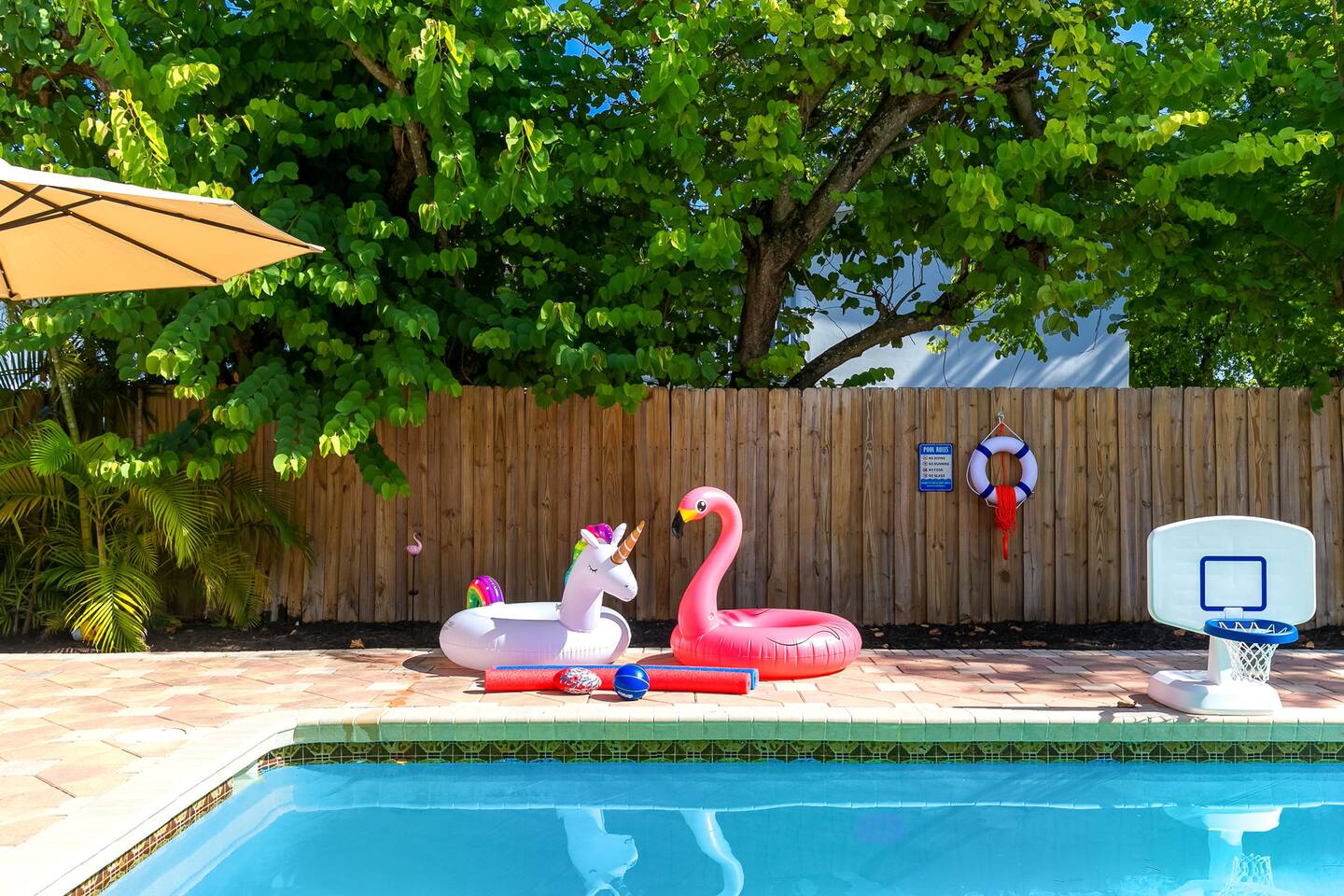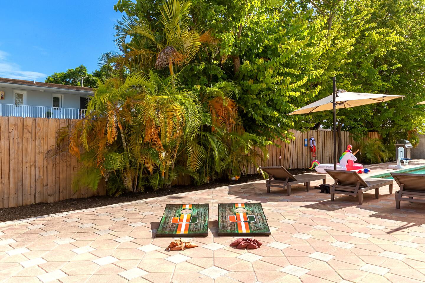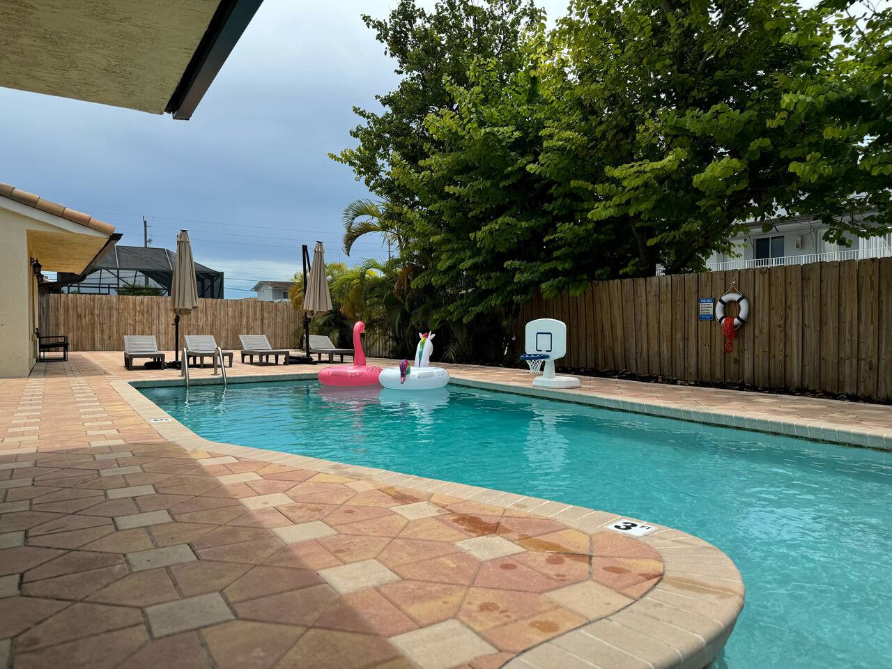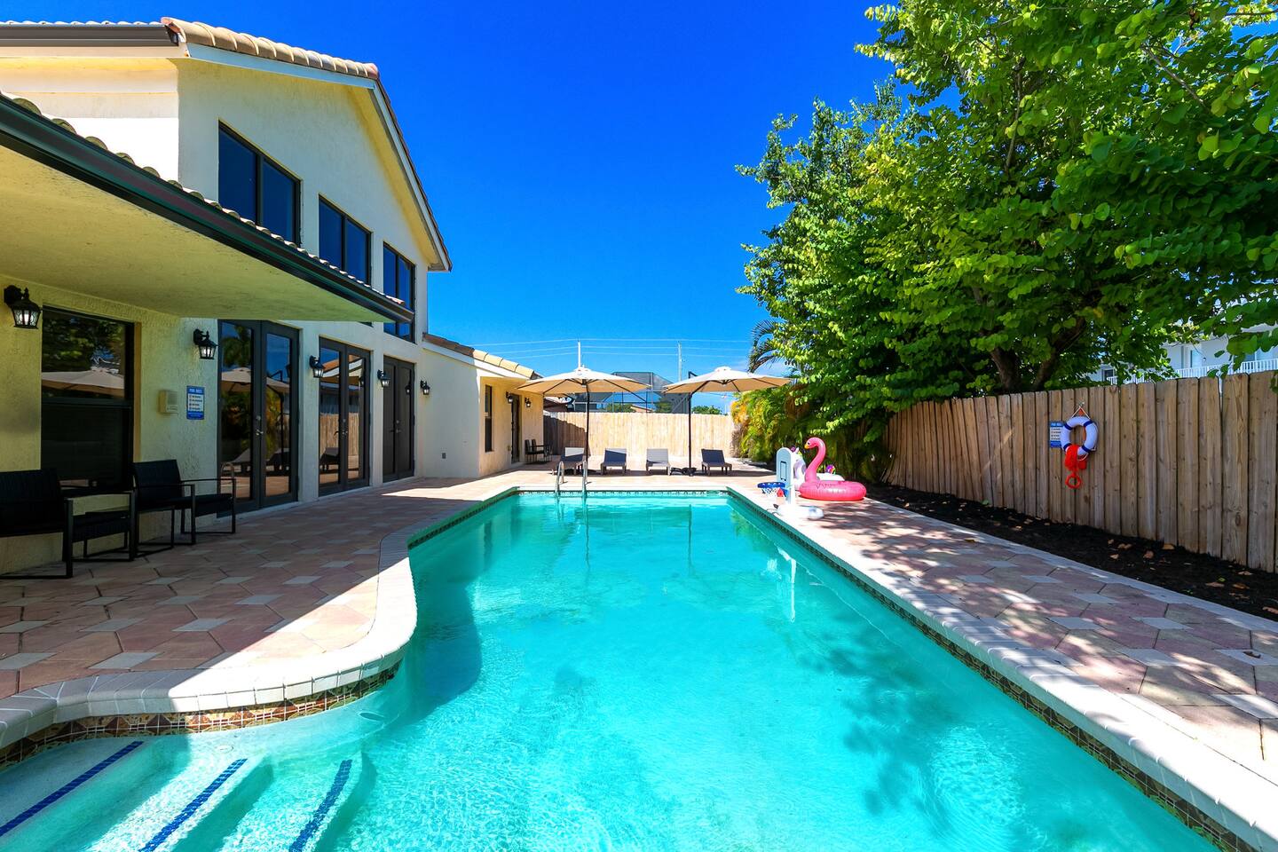 - Central location in Westchester area - Less than 20 minutes from Dolphin Mall and Zoo Miami, among other popular attractions - Game room with Atari, retro game console, and board games - Private backyard with pool, grill, and outdoor furniture - Office space with desk and computer - Pack-n-play and high chair for families Plus, this home is: 5 miles (12 min) from Dolphin Mall 6 miles (13 min) from University of Miami 10 miles (17 min) from Miami Freedom Park and Soccer Village 10 mile (24 min) from Vizcaya Museum & Gardens 11 miles (18 min) from Miami International Airport 12 miles (23 min) from Downtown Miami 13 miles (19 min) from Zoo Miami 13 miles (26 min) from Bayside Marketplace Less than a mile from various restaurants and shops -- BEDROOMS -- This Miami dream home has five spacious bedrooms. There are two bedrooms and one living area located on the main level of the house. The master bedroom features a king-size bed, and a Smart TV to watch your favorite shows. It also includes an ensuite bathroom and closet, plus a sofa sleeper. The second master is located in a mother-in-law suite that is outfitted with a king-size bed, kitchenette, and full bathroom. The third, fourth and fifth bedrooms are located on the second level. The third bedroom features a queen-size bed and closet. The fourth bedroom also has a queen-size bed. And the fifth bedroom features two twin size trundle beds, which means there are four twin size beds total. If you’re traveling with little ones feel free to use the pack-n-play and high chair! -- BATHROOMS -- There are three FULL bathrooms. The first one is attached to the master bedroom. The second bathroom is located in the secondary master suite. The third bathroom is located on the second level. All bathrooms include towels and essential toiletries (body wash, shampoo, conditioner). -- KITCHEN -- After hitting the beach or sightseeing, prepare your favorite meal in the fully loaded kitchen with everything you’ll need for cooking and baking. Aside from all the kitchen basics, you’ll also find a toaster, a blender, and Keurig. Sip on morning coffee or tea on the back porch and soak up the Florida sun. Complimentary coffee and tea provided. When it comes time for enjoying your meals, you can head over to the beautiful wood dining table that seats eight, plus bar seating. The open kitchen/dining area is perfect for morning chats, family meals and game night. -- LIVING ROOM -- The living room is located next to the kitchen and is a great space for chatting while whipping up culinary delights. It is the perfect spot for lounging around with family and friends, or watching a movie on the Smart TV. There are two additional rooms next to the living room. A dedicated office features a desk and computer, plus a sofa sleeper. The other room features a Smart TV with Atari, a retro game console, and a sofa sleeper. -- OUTDOOR AREA -- Our home is set up to spend plenty of time outside in the fresh air! The backyard features a private pool, grill, outdoor furniture, and yard games! -- Book Today & Enjoy the Best of Miami! -- To abide by all legal requirements and property rules, you WILL be asked to provide a copy of your official government-issued photo ID, confirm your contact information, pass through our verification portal and, in some instances, complete a criminal background check. Failure to provide these documents will result in a cancellation and denied entry. IMPORTANT NOTE: The information is collected for verification only and is not stored or used for any other purposes.