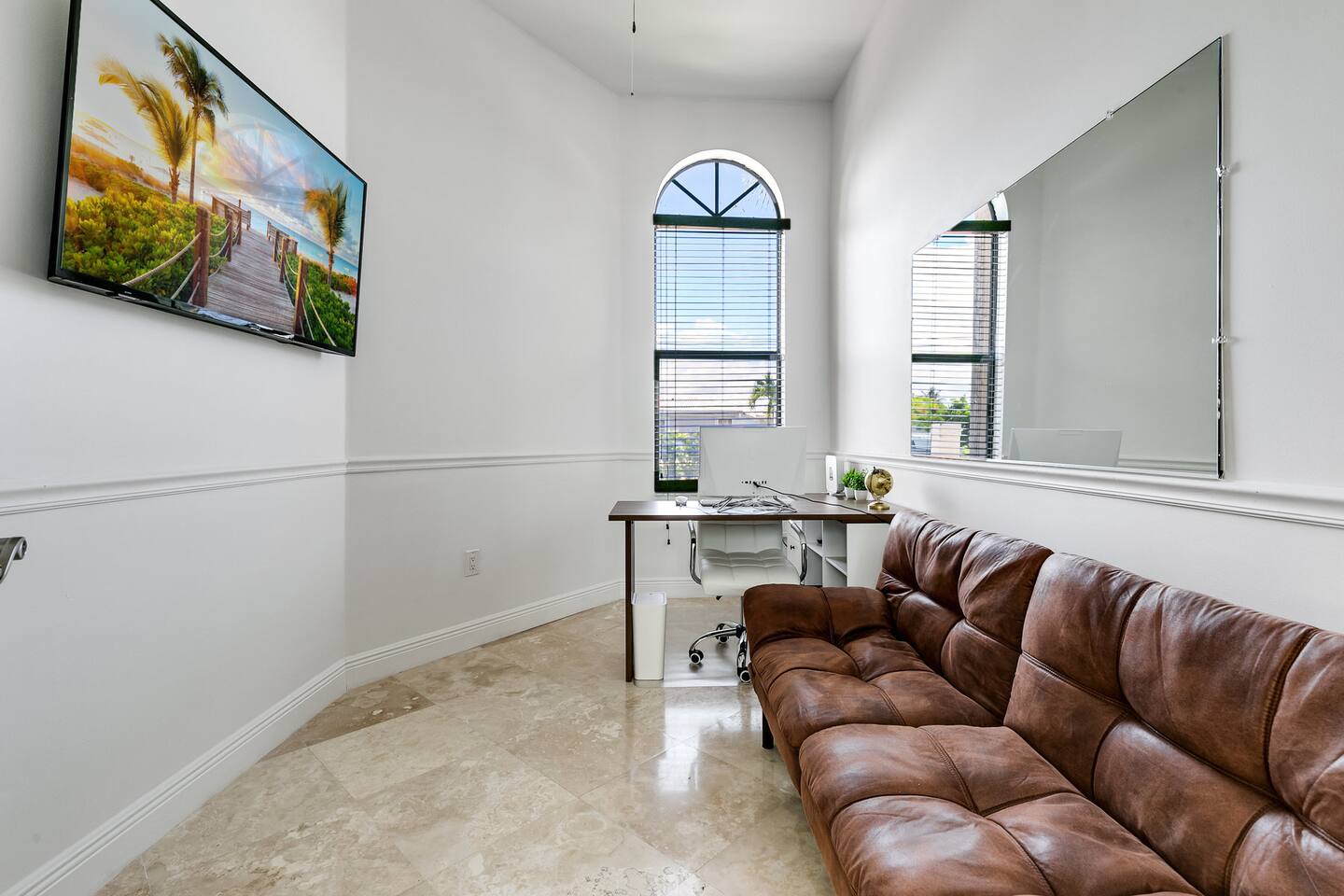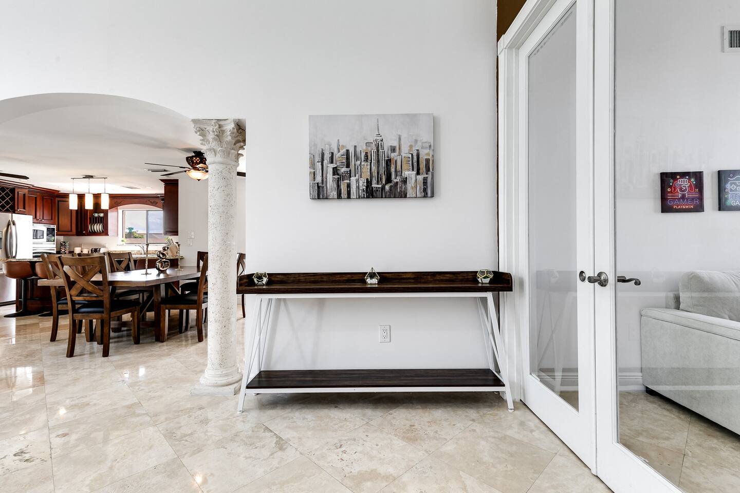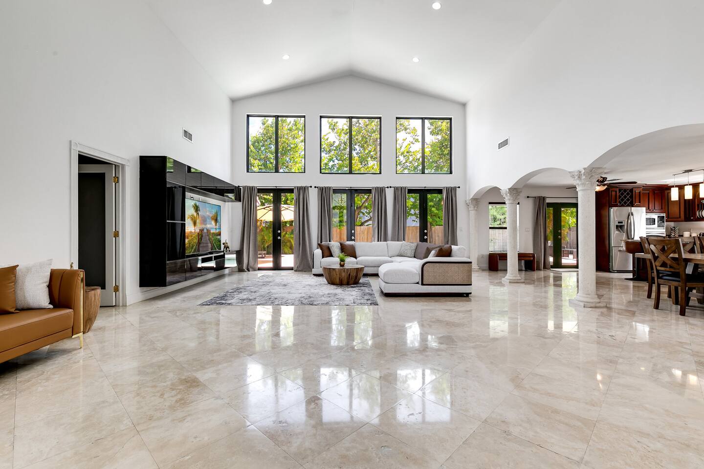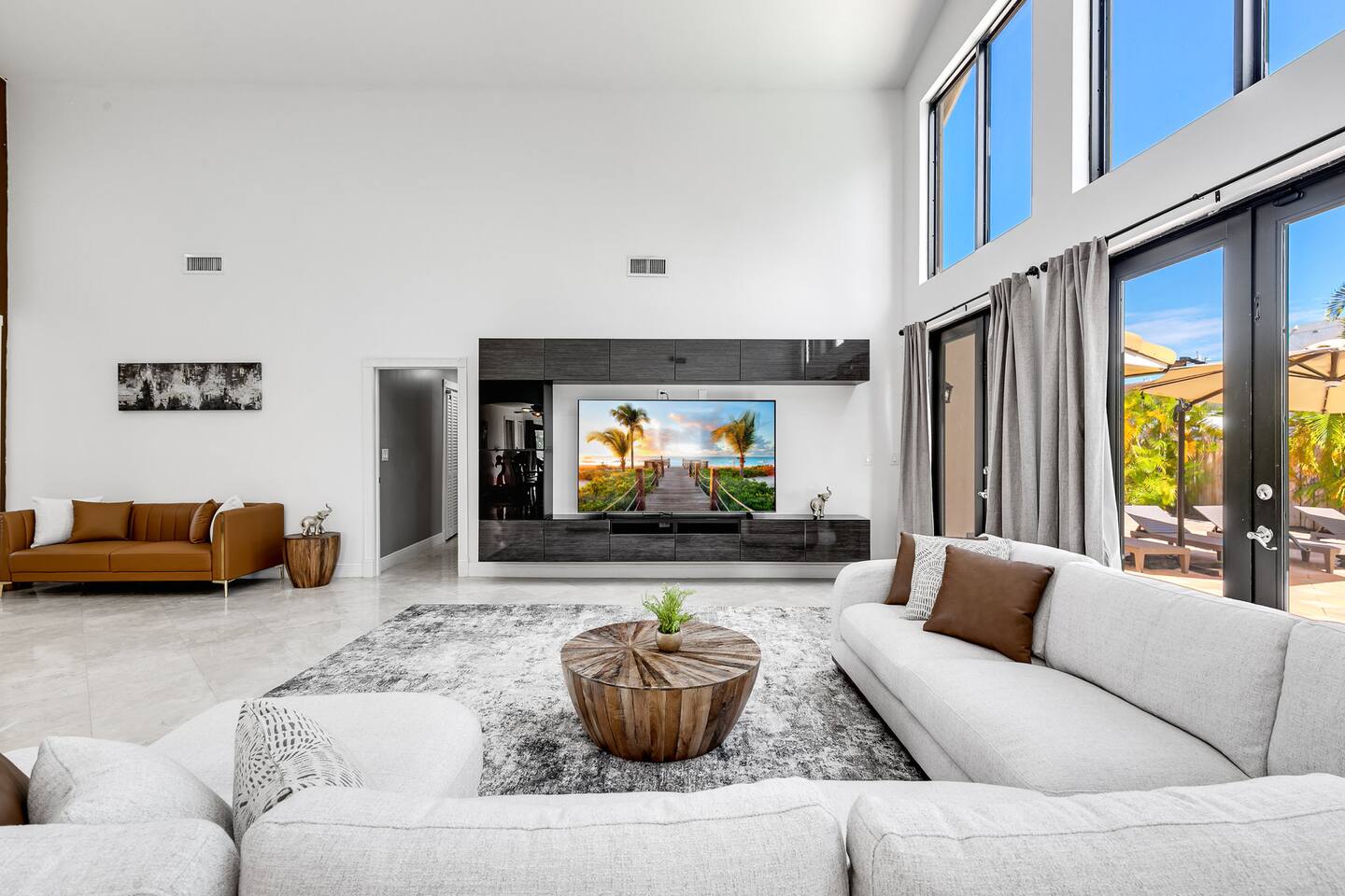 - Central location in Westchester area - Less than 20 minutes from Dolphin Mall and Zoo Miami, among other popular attractions - Game room with Atari, retro game console, and board games - Private backyard with pool, grill, and outdoor furniture - Office space with desk and computer - Pack-n-play and high chair for families Plus, this home is: 5 miles (12 min) from Dolphin Mall 6 miles (13 min) from University of Miami 10 miles (17 min) from Miami Freedom Park and Soccer Village 10 mile (24 min) from Vizcaya Museum & Gardens 11 miles (18 min) from Miami International Airport 12 miles (23 min) from Downtown Miami 13 miles (19 min) from Zoo Miami 13 miles (26 min) from Bayside Marketplace Less than a mile from various restaurants and shops -- BEDROOMS -- This Miami dream home has five spacious bedrooms. There are two bedrooms and one living area located on the main level of the house. The master bedroom features a king-size bed, and a Smart TV to watch your favorite shows. It also includes an ensuite bathroom and closet, plus a sofa sleeper. The second master is located in a mother-in-law suite that is outfitted with a king-size bed, kitchenette, and full bathroom. The third, fourth and fifth bedrooms are located on the second level. The third bedroom features a queen-size bed and closet. The fourth bedroom also has a queen-size bed. And the fifth bedroom features two twin size trundle beds, which means there are four twin size beds total. If you’re traveling with little ones feel free to use the pack-n-play and high chair! -- BATHROOMS -- There are three FULL bathrooms. The first one is attached to the master bedroom. The second bathroom is located in the secondary master suite. The third bathroom is located on the second level. All bathrooms include towels and essential toiletries (body wash, shampoo, conditioner). -- KITCHEN -- After hitting the beach or sightseeing, prepare your favorite meal in the fully loaded kitchen with everything you’ll need for cooking and baking. Aside from all the kitchen basics, you’ll also find a toaster, a blender, and Keurig. Sip on morning coffee or tea on the back porch and soak up the Florida sun. Complimentary coffee and tea provided. When it comes time for enjoying your meals, you can head over to the beautiful wood dining table that seats eight, plus bar seating. The open kitchen/dining area is perfect for morning chats, family meals and game night. -- LIVING ROOM -- The living room is located next to the kitchen and is a great space for chatting while whipping up culinary delights. It is the perfect spot for lounging around with family and friends, or watching a movie on the Smart TV. There are two additional rooms next to the living room. A dedicated office features a desk and computer, plus a sofa sleeper. The other room features a Smart TV with Atari, a retro game console, and a sofa sleeper. -- OUTDOOR AREA -- Our home is set up to spend plenty of time outside in the fresh air! The backyard features a private pool, grill, outdoor furniture, and yard games! -- Book Today & Enjoy the Best of Miami! -- To abide by all legal requirements and property rules, you WILL be asked to provide a copy of your official government-issued photo ID, confirm your contact information, pass through our verification portal and, in some instances, complete a criminal background check. Failure to provide these documents will result in a cancellation and denied entry. IMPORTANT NOTE: The information is collected for verification only and is not stored or used for any other purposes.